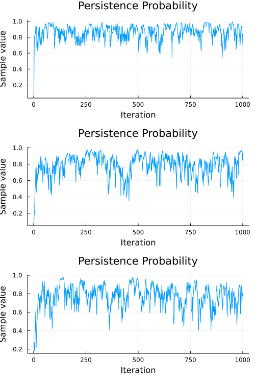 plot(subchain; seriestype=:traceplot, title="Persistence Probability", legend=false)