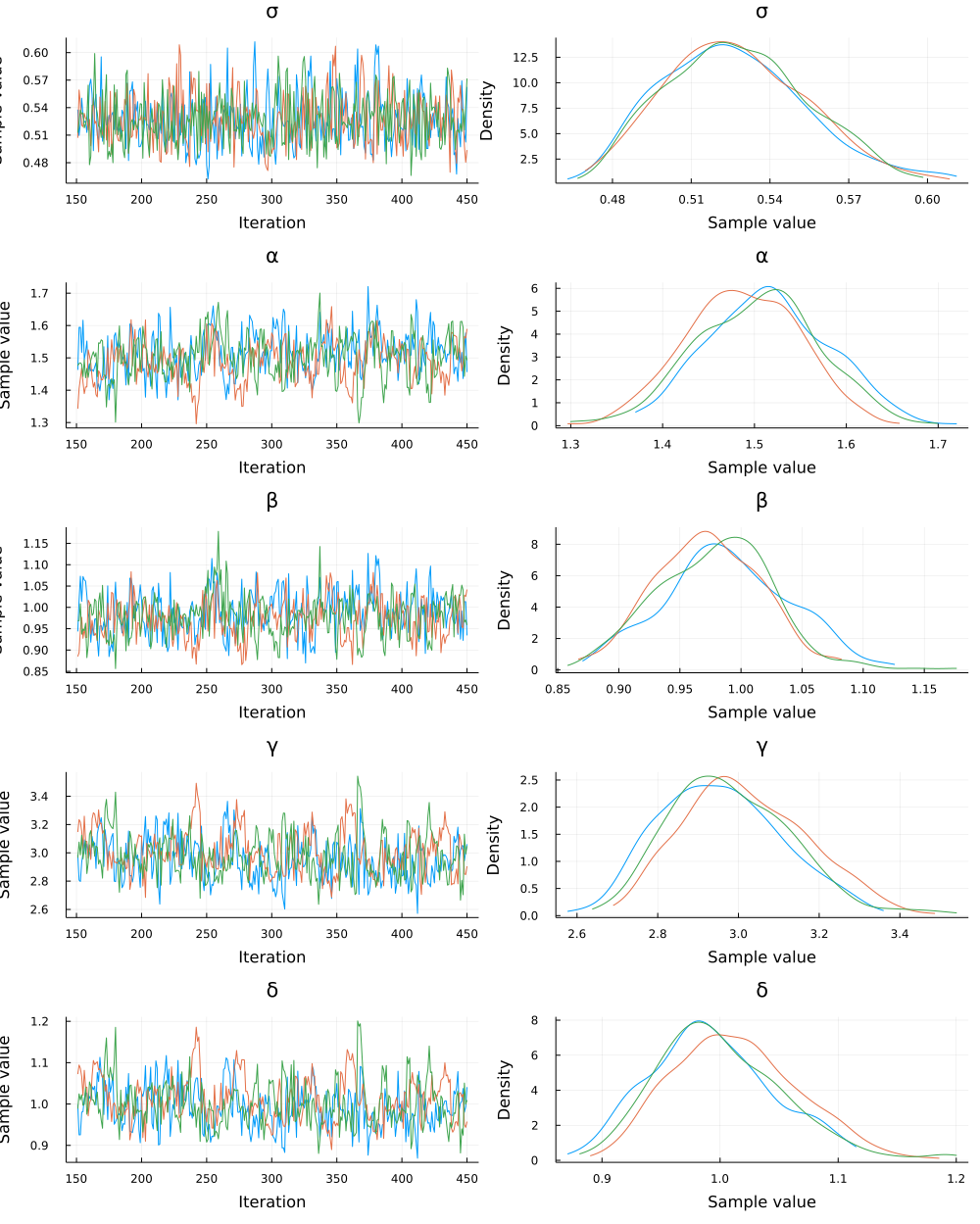 posterior_samples = sample(chain[[:α, :β, :γ, :δ]], 300; replace=false)