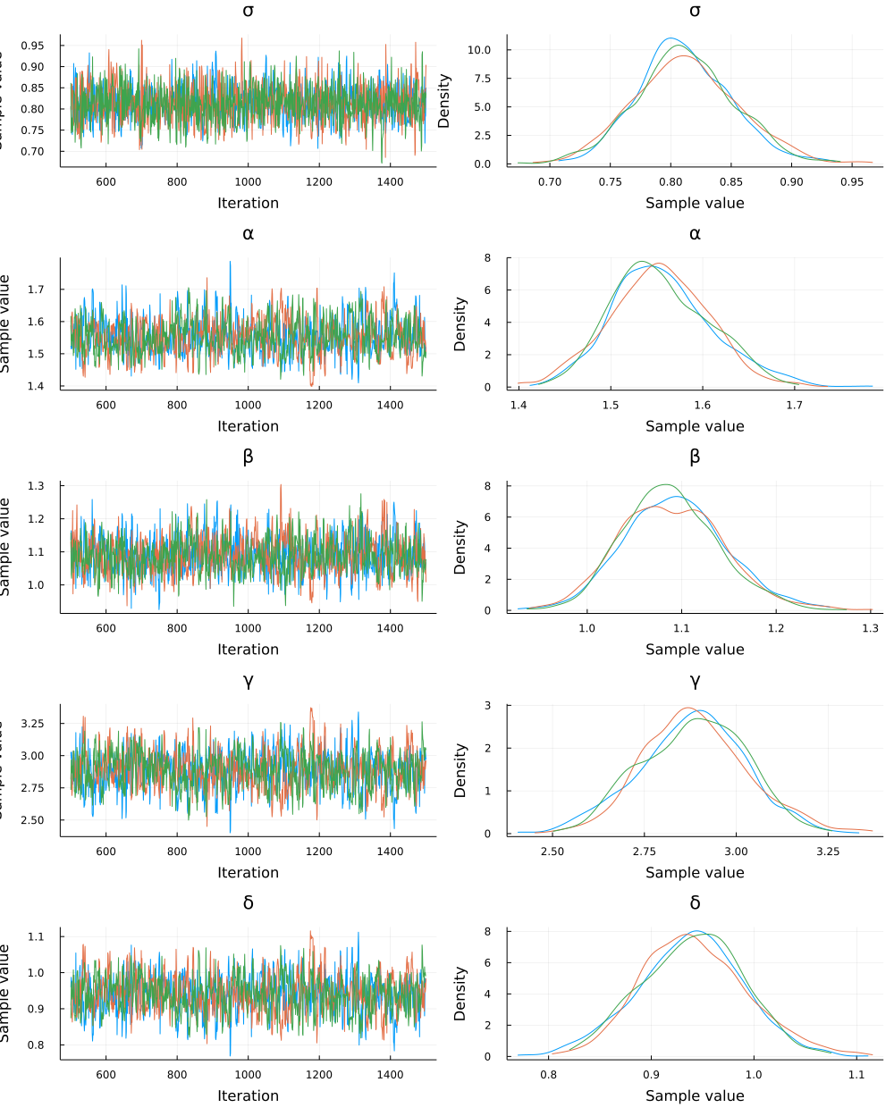 Chains MCMC chain (1000×17×3 Array{Float64, 3}):